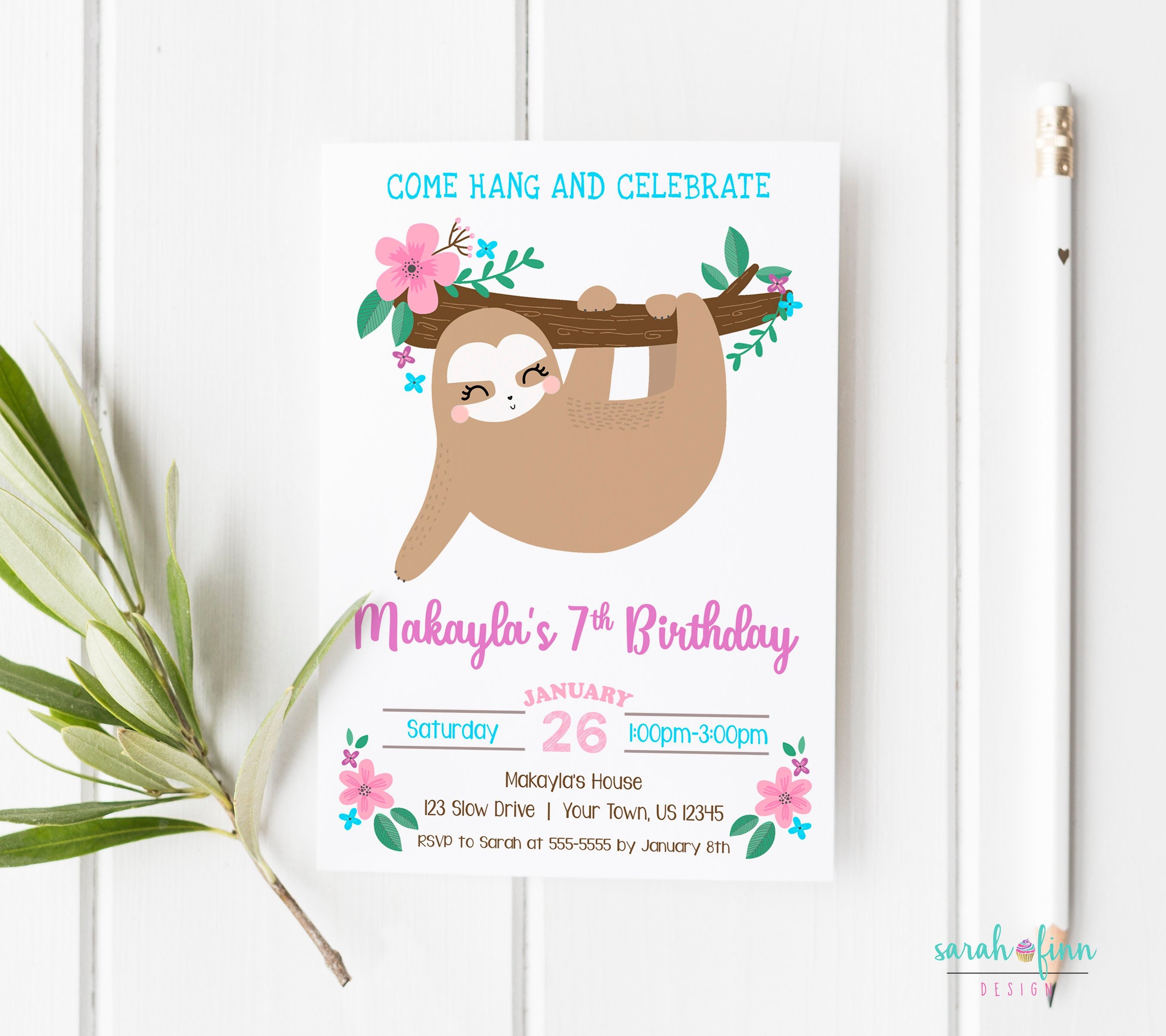 L View fullsize image. Sloth Birthday Invitations Printable You might want to consider a Printable Invitation if you are planning to host a wedding reception or party. Lets Hang Out - Jungle Sloth Themed Birthday Party Invitation - 5x7 Editable and Printable Template.